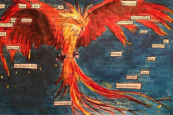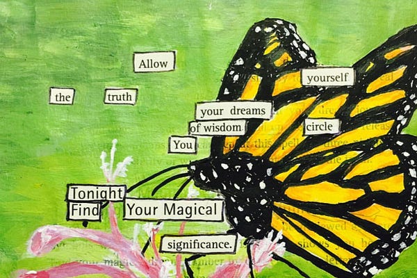 Erasure Poetry, Flash Fiction, Essay; creative writing inspired by the mystical nature of living and exploring “aliveness” at every age.